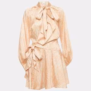 Acler Beige Snakeskin Print Satin Mini Wrap Dress S