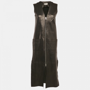 Aeron Black Leather Zip Front Sleeveless Dress S