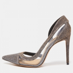 Alexandre Birman Metallic Grey Leather Ankle-Strap Sandals Size 35.5