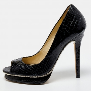 Alexandre Birman Black Python Embossed Leather Peep Toe Platform Pumps Size 41