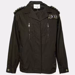 Amen Dark Green Cotton Crystal Embellished Epaulette Detail Military Jacket M
