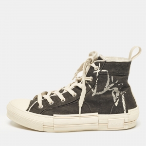 حذاء رياضي ديور B23 قماش مائل أبيض/أسود بدون رباط مقاس 46