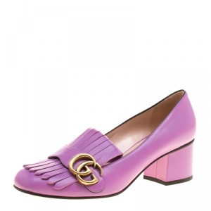 حذاء لوفر غوتشي كعب عالي مارمونت GG جلد أحمر مقاس 37.5