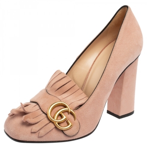 حذاء كعب عالي غوتشي مقدمة مربعة سويدي أسود مقاس 37