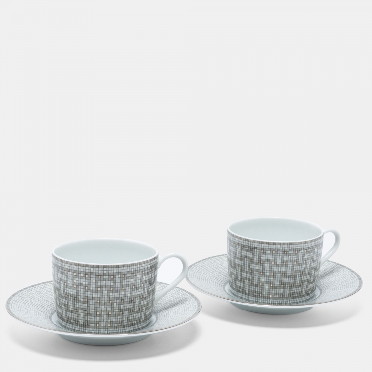 مملوكة مسبقًا Hermès Mosaique AU 24 Platinum Tea Cup & Saucer Set