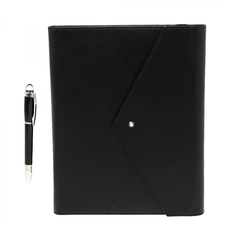 مملوكة مسبقًا مجموعة الورق مون بلان المعزز جلد أسود