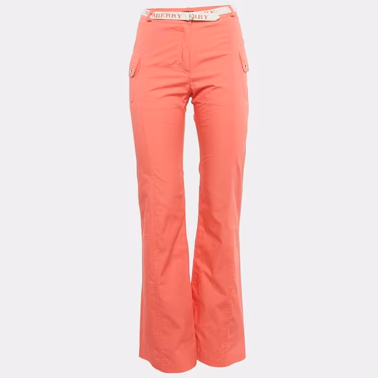 Pre Owned بنطلون واسع الساق مزين بحزام قطن وردي بربري 14 سنة