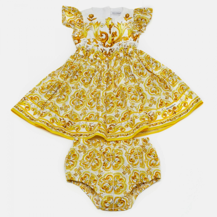 فستان وشورت قطن طبعة ميجوليكا أصفر دولتشي وغابانا كيدز 12/18 شهر