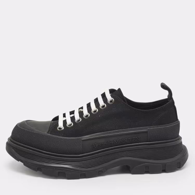 Pre Owned حذاء رياضي ألكساندر ماكوين عنق منخفض تريد مطاط وجلد أبيض /أسود مقاس 42