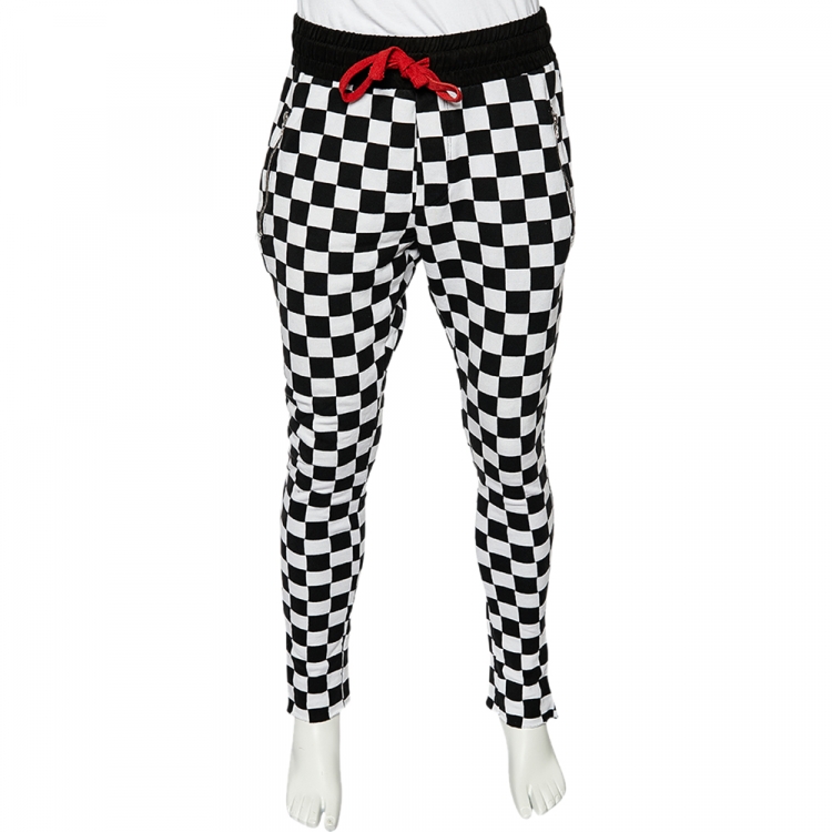Pre Owned بنطلون رياضي أميري تريكو قطن نمط شيس بورد مونوكروم مقاس متوسط