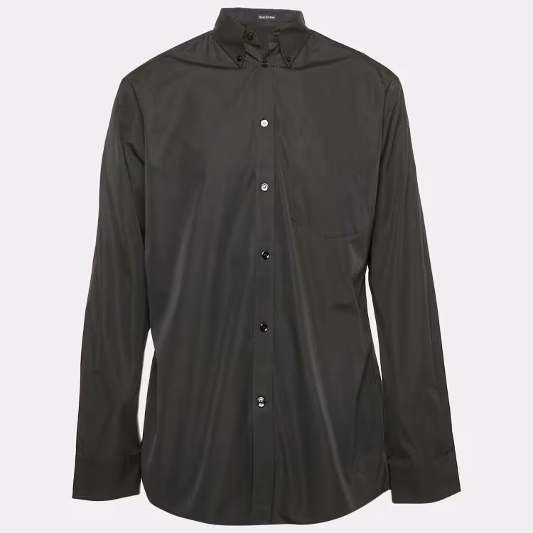 Pre Owned قميص بالنسياغا كم طويل قطن أسود مقاس متوسط - ميديم