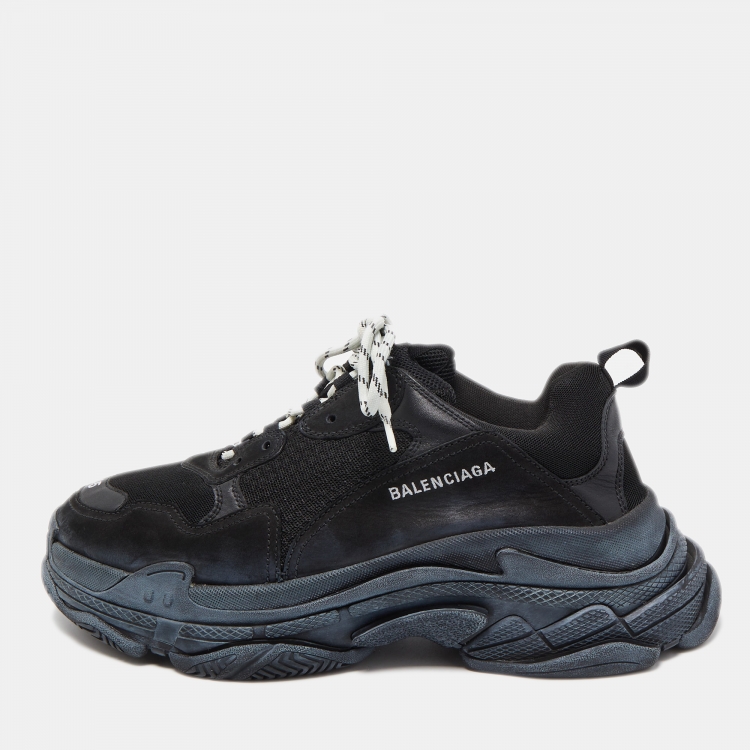 Balenciaga Black Nubuck Leather and Mesh Triple S Low Top Sneakers Size 45