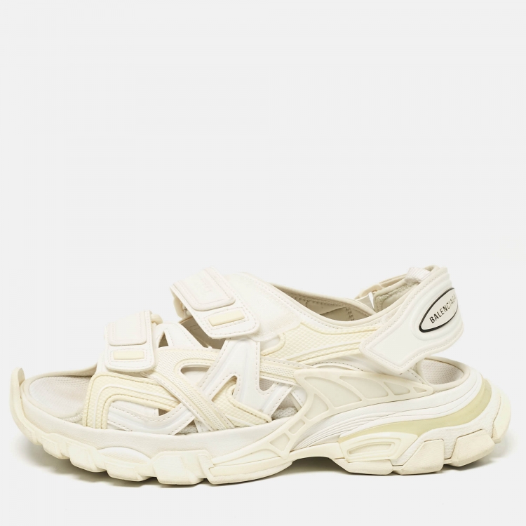 Balenciaga Cream Faux Leather Track Flat Sandals Size 41