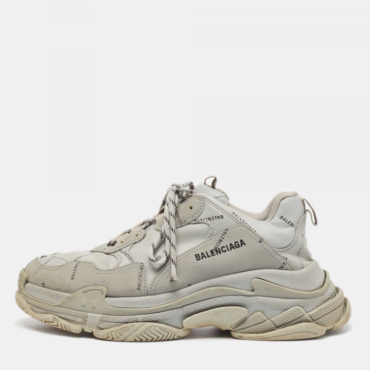Balenciaga Grey Faux Leather Triple S Sneakers Size 44