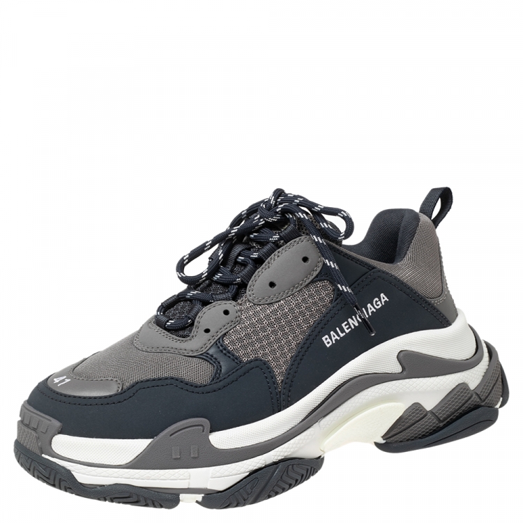 Pre Owned حذاء رياضي بالنسياغا تريبل أس جلد وشبك رصاصي مقاس 41
