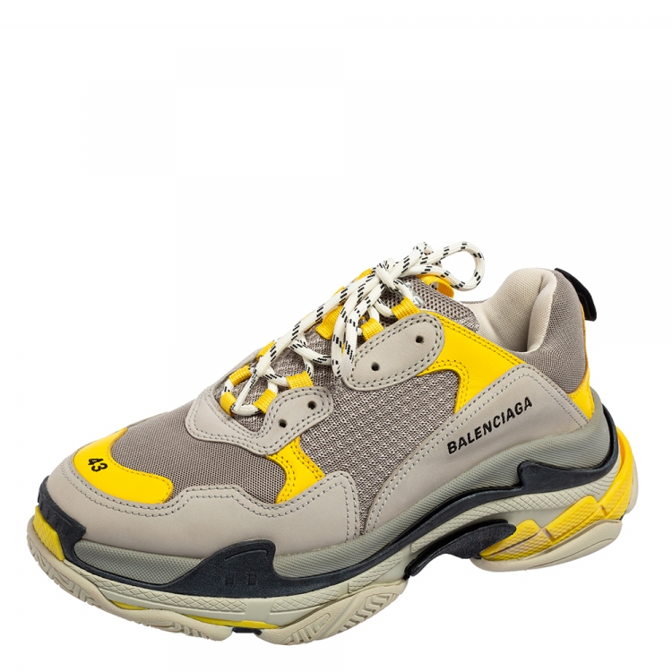 حذاء رياضي بالنسياغا تريبل أس ترينر نوبوك وشبك وجلد أصفر/ رمادي مقاس 43