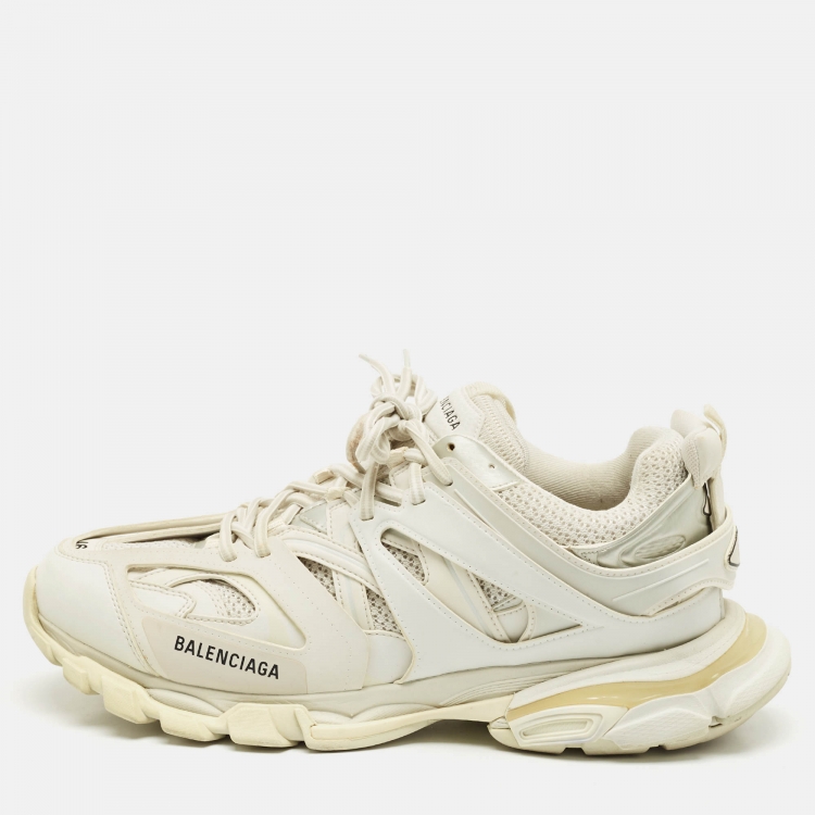 Balenciaga White Faux Leather and Mesh Track Sneakers Size 46