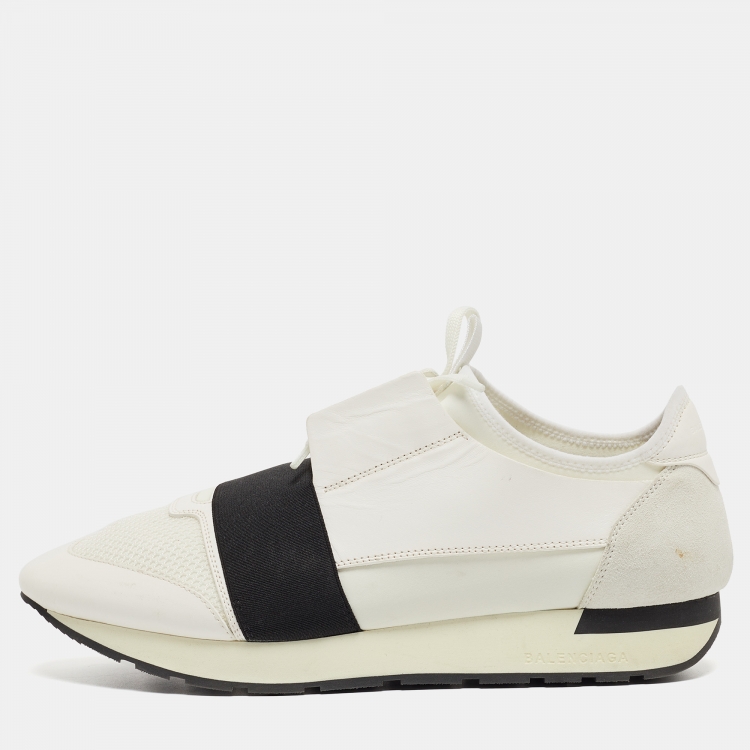 مملوكة مسبقًا Balenciaga White Mesh and Leather Race Runner Sneakers Size 43