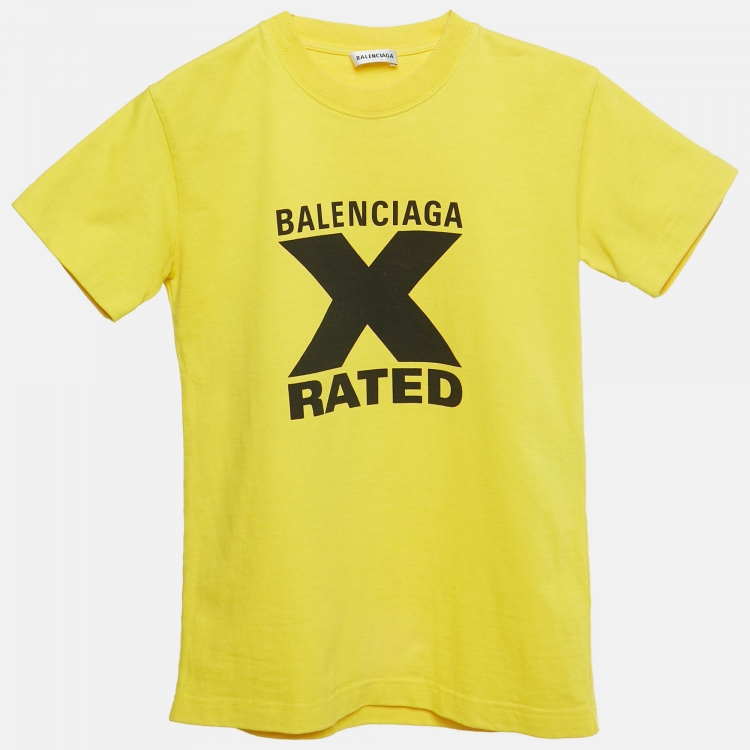 Pre Owned قميص بالنسياغا ياقة مستديرة قطن بطباعة شعار أصفر مقاس صغير جداً (اكس سمول)