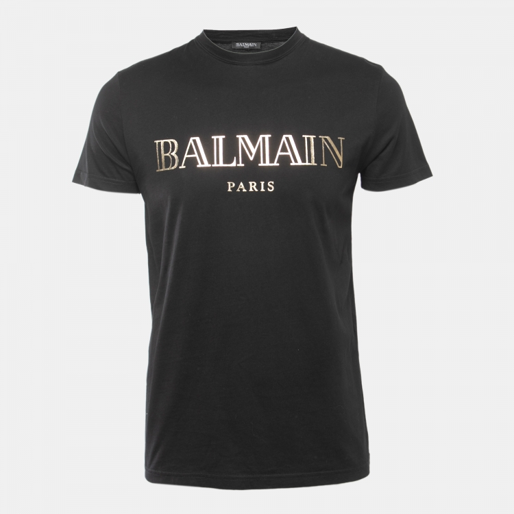 Balmain Black Logo Printed Cotton Knit T-Shirt M