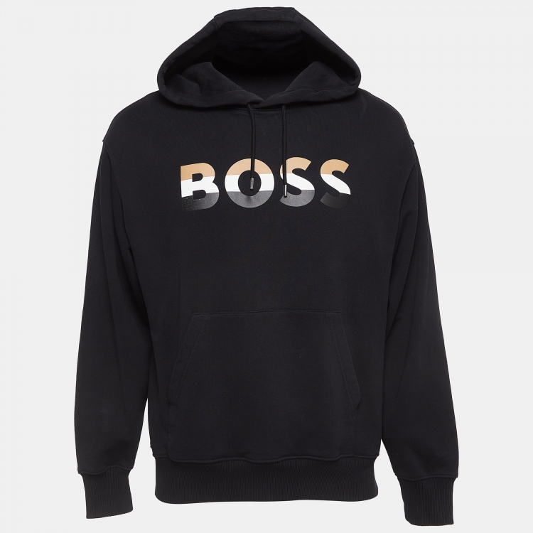 Boss By Hugo Boss Black Logo Print Cotton Knit Oversized Hoodie M