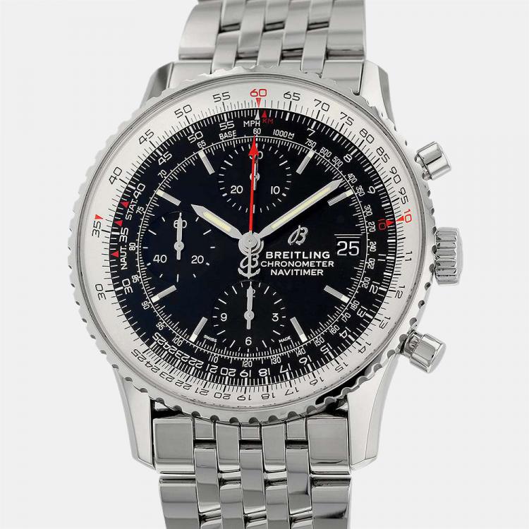 Pre Owned Breitling Black Stainless Steel Navitimer Chronograph A13324 Men's Wristwatch 42 mm