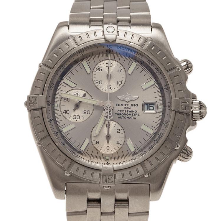مملوكة مسبقًا ساعة يد رجالي بريتلينغ كروسويند ستينلس ستيل فضي 44 مم