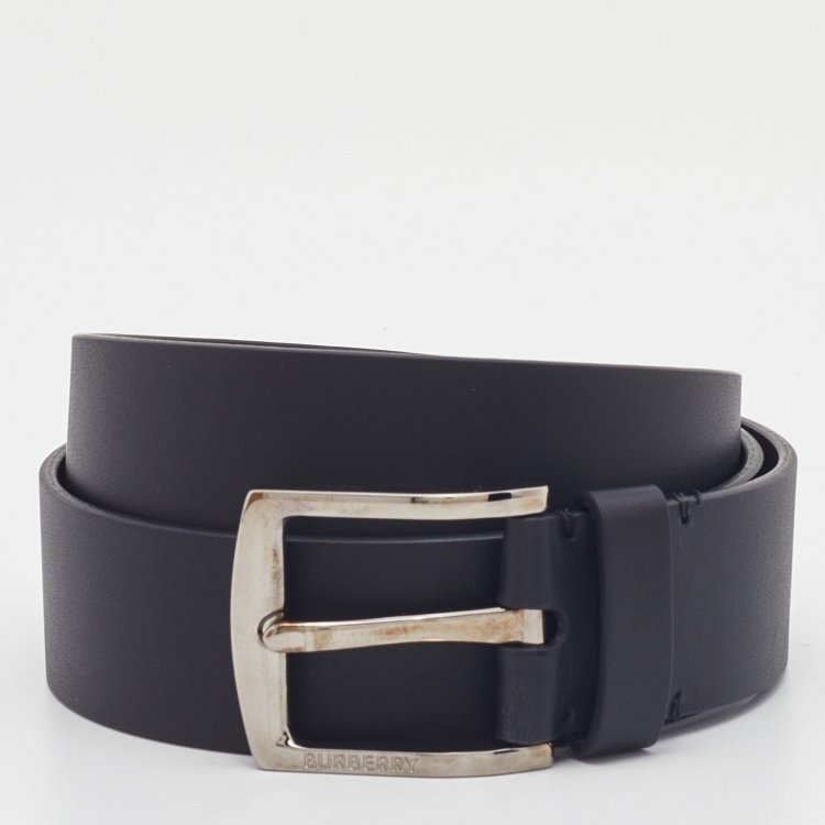 مملوكة مسبقًا Burberry Black Leather Louis Buckle Belt 95CM