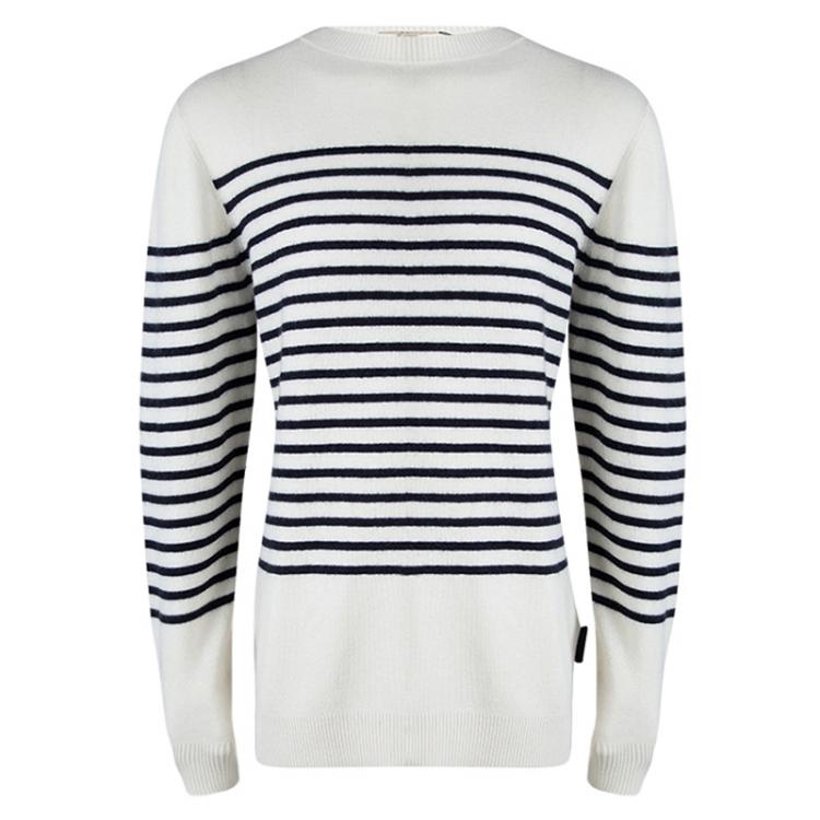 Pre Owned بلوفر بربري بريت أبيض أوف وايت وأزرق كحلي مخطط XXL
