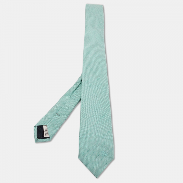 مملوكة مسبقًا ربطة عنق بربري لندن حرير كتان أخضر رفيعة
