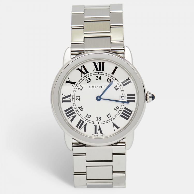 مملوكة مسبقًا ساعة يد رجالية كارتييه روند سولو W6701005 ستانلس ستيل فضية 36 مم