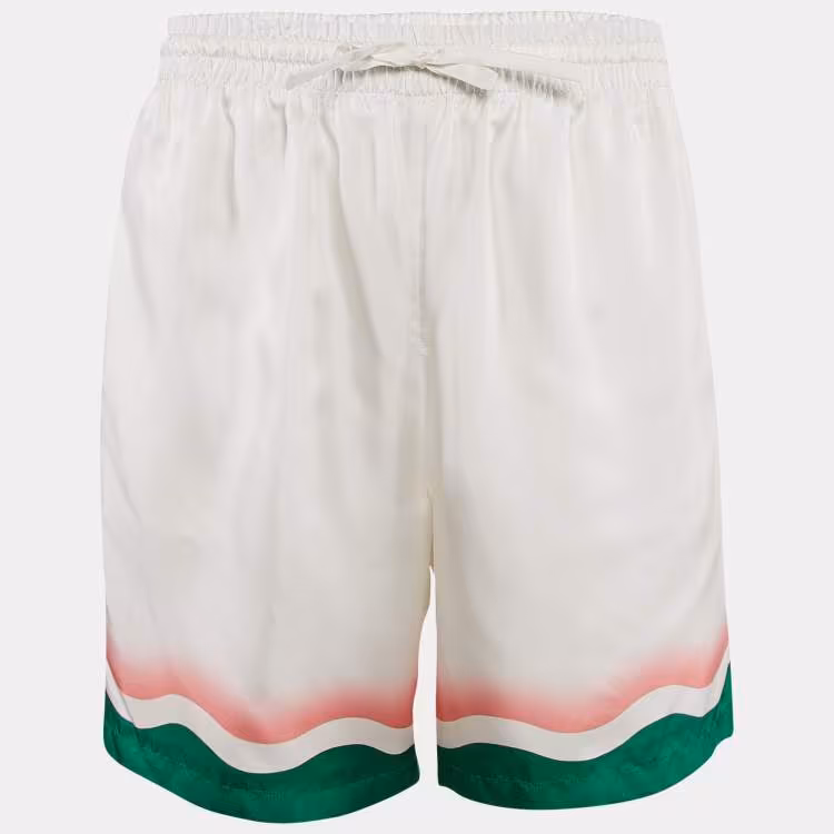 مملوكة مسبقًا شورت كازابلانكا أبيض مخطط حرير نادي التنس مقاس كبير