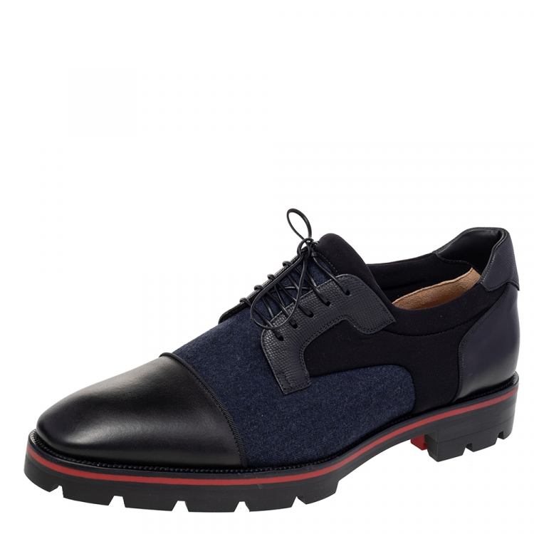 Pre Owned حذاء ديربي كريستيان لوبوتان ميكا سكاي نيوبرين ودنيم وجلد أسود رباط علوي مقاس 44