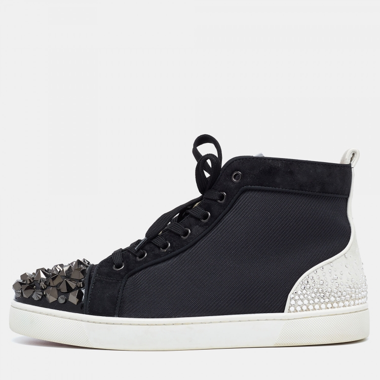 Pre Owned حذاء رياضي كريستيان لوبوتان أورلاتو كانفاس وسويدي رصاصي/أسود برباط مقاس 41.5