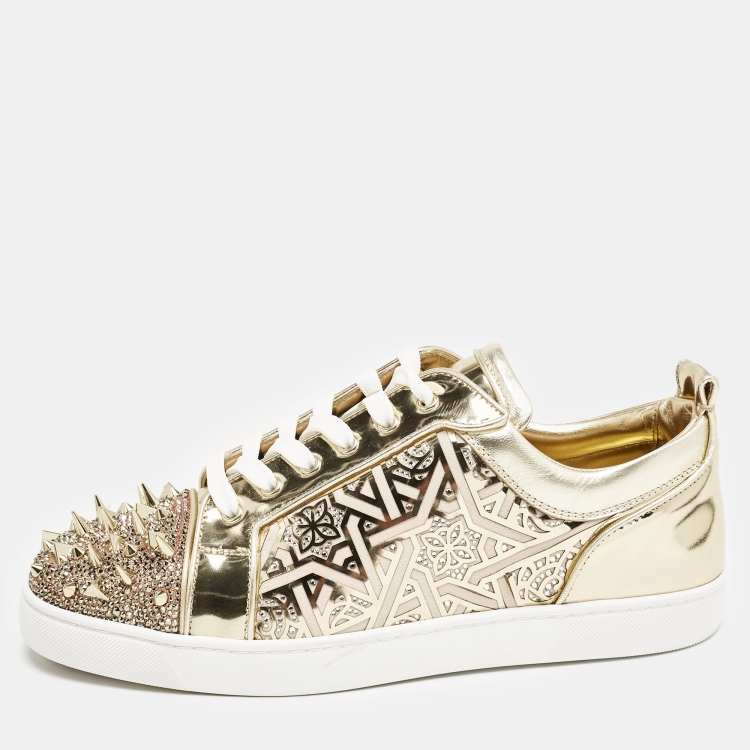 Pre Owned حذاء رياضي كريستيان لوبوتان لويز جونيور بك بك جلدي لامع ذهبي منخفض العنق مقاس 45