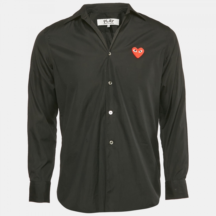 Comme des Garcons Black Cotton Heart Applique Detail Shirt S