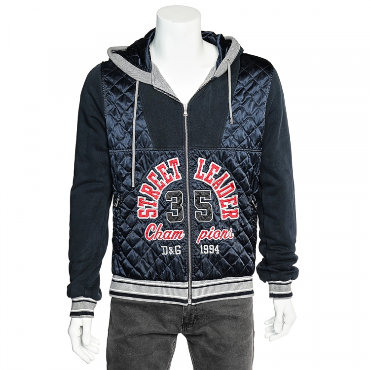جاكيت دولتشي أند غابانا تريكو قطن أزرق داكن مزين مبطن متباين سحاب أمامي بهودي مقاس كبير (لارج)