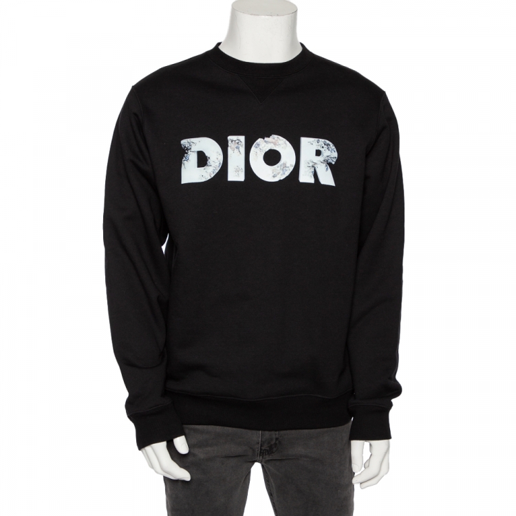 بلوفر ديور قطن أسود بنقشة الزهور برقبة مستديرة مقاس متوسط - ميديوم