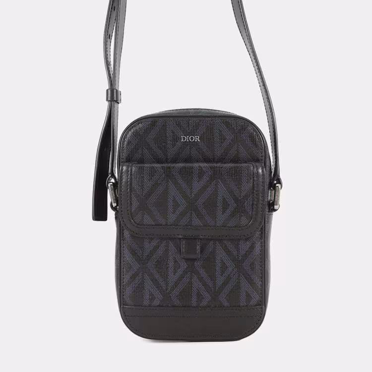 حقيبة كتف ديور CD هيت ذا رود عمودية قماش جلد أسود