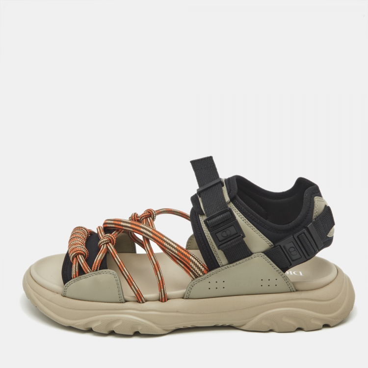 Pre Owned صندل ديور فلات جلد رمادي ه-تاون مقاس 41