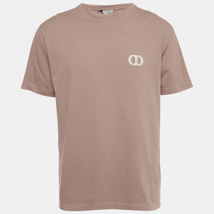 مملوكة مسبقًا تي شيرت ديور أوم وردي معدني قطن بتفاصيل شعار برقبة دائرية مقاس وسط