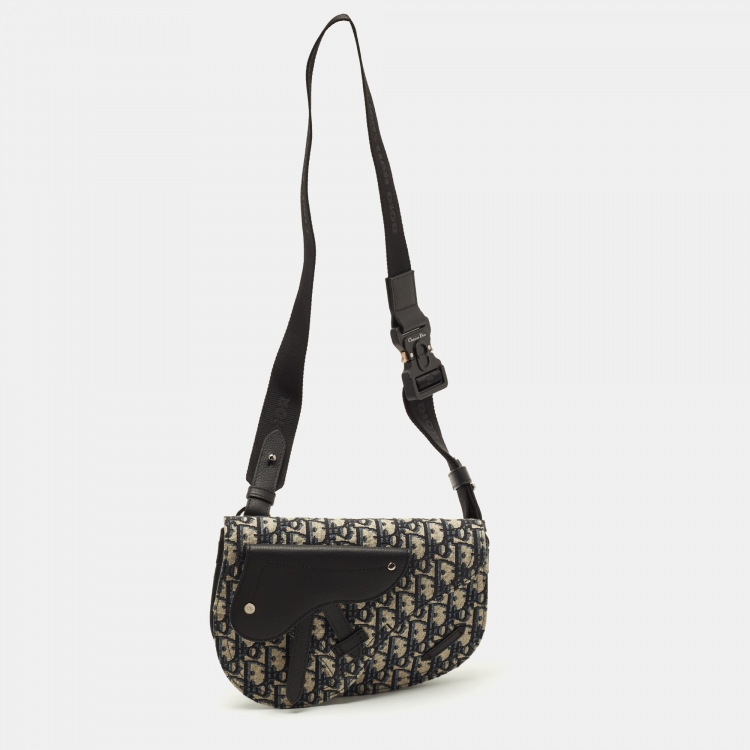 حقيبة ديور سادل باوتش كانفاس أوبليك كحلي/أسود وجلد