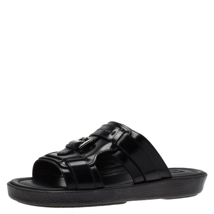 Pre Owned Dolce and Gabbana Black Leather Buckle Sandals Size 43