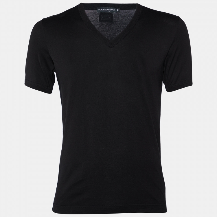 Dolce & Gabbana Black Cotton Knit V-Neck T-Shirt S