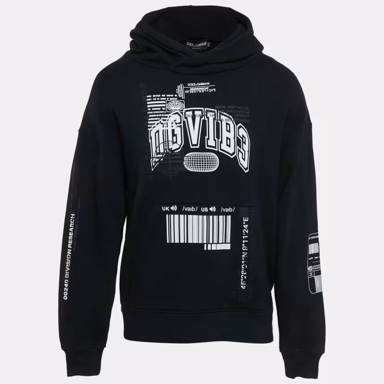 مملوكة مسبقًا سويت شيرت دولتشي آند غابانا DGVIBE3 مطبوع قطن تريكو أسود مقاس صغير جدًا - إكس سمول