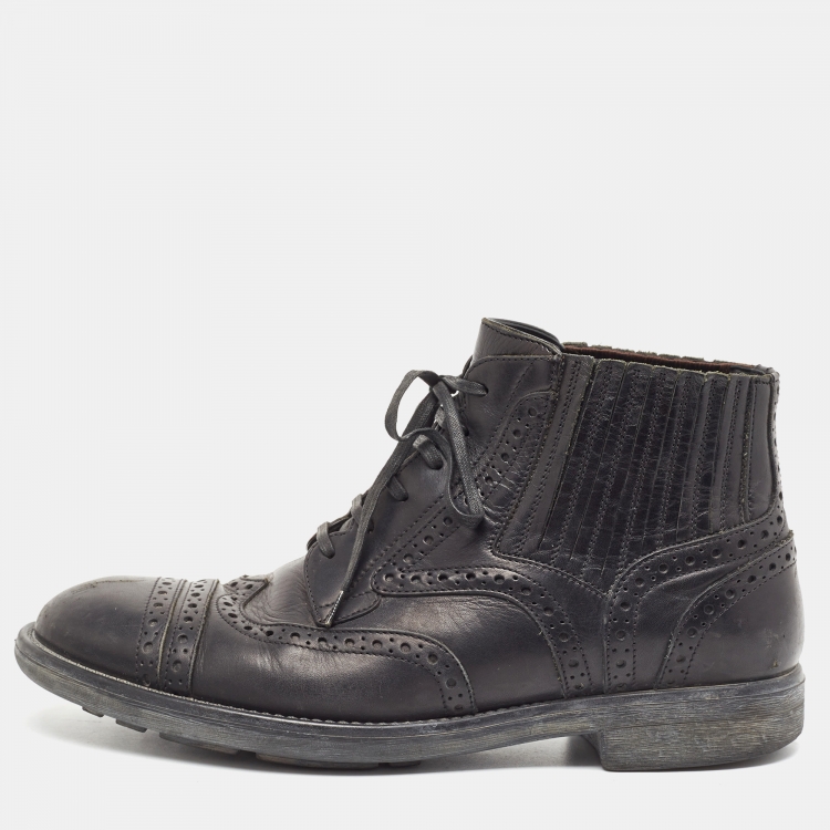 Pre Owned Dolce & Gabbana Black Leather Lace Up Combat Boots Size 39