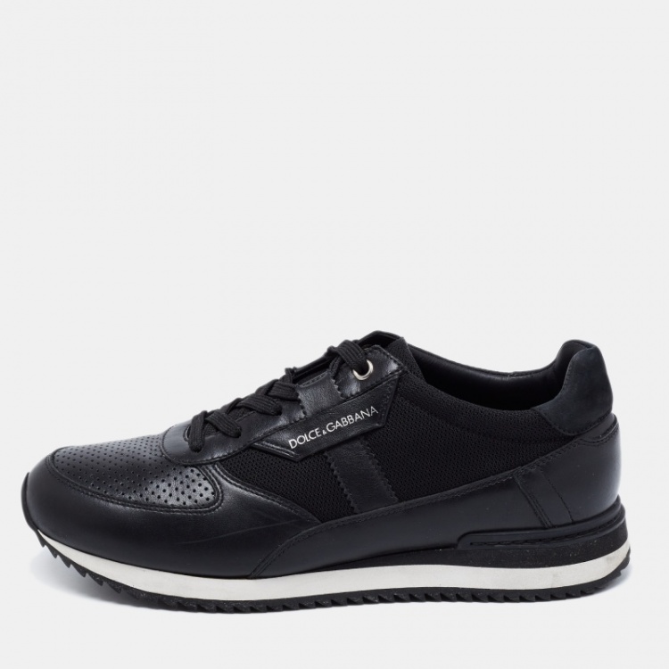 حذاء رياضي دولتشي أند غابانا شبك وجلد مخرم أسود بعنق منخفض مقاس 40