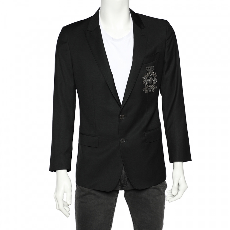 جاكيت بليزر دولتشي أند غابانا مارتيني صوف أسود مزخرف شعار ونحلة مقاس وسط (ميديوم)