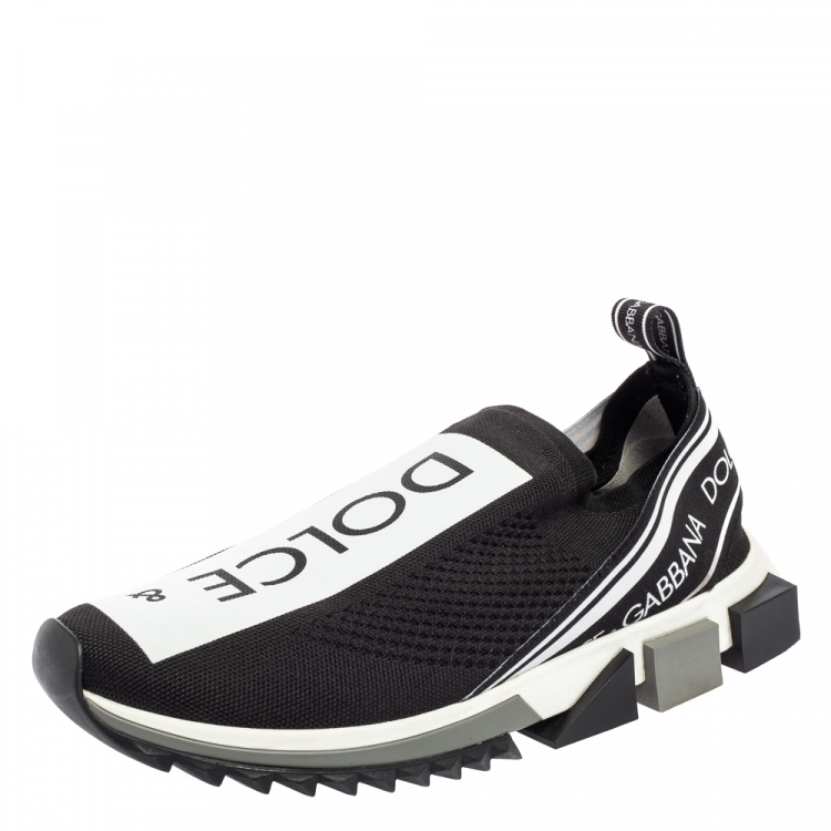 حذاء رياضي دولتشي أند غابانا سليب أون سورينتو قماش تريكو أبيض / أسود مقاس 45