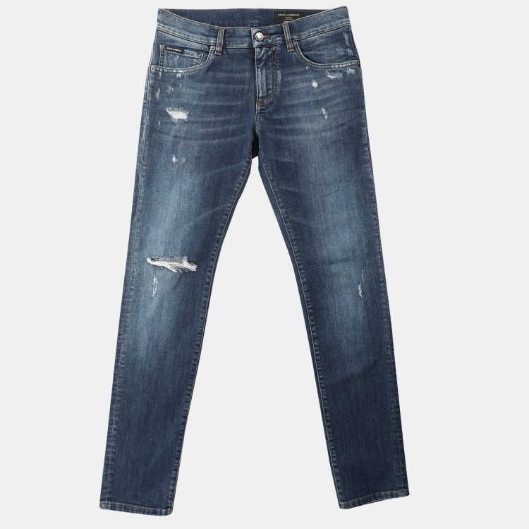 مملوكة مسبقًا بنطلون جينز ضيق ممزق من دولتشي أند غابانا دينم أزرق مقاس صغير جداً (إكسترا سمول)
